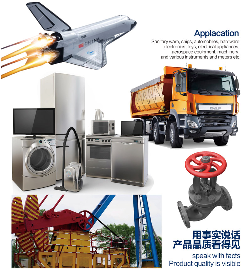 衛(wèi)浴、五金、電子、玩具、電器、航空航天設(shè)備、機(jī)械、以及各類儀器儀表等